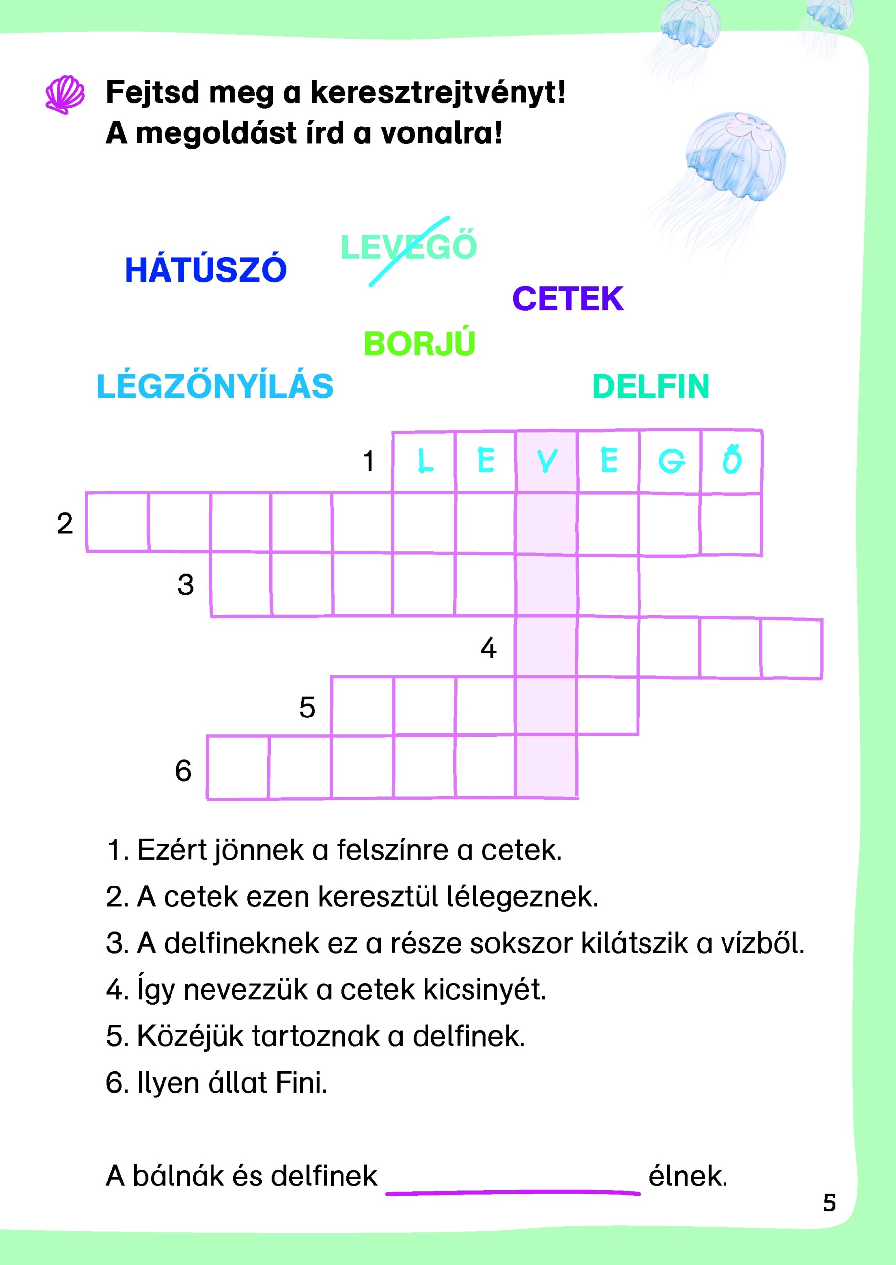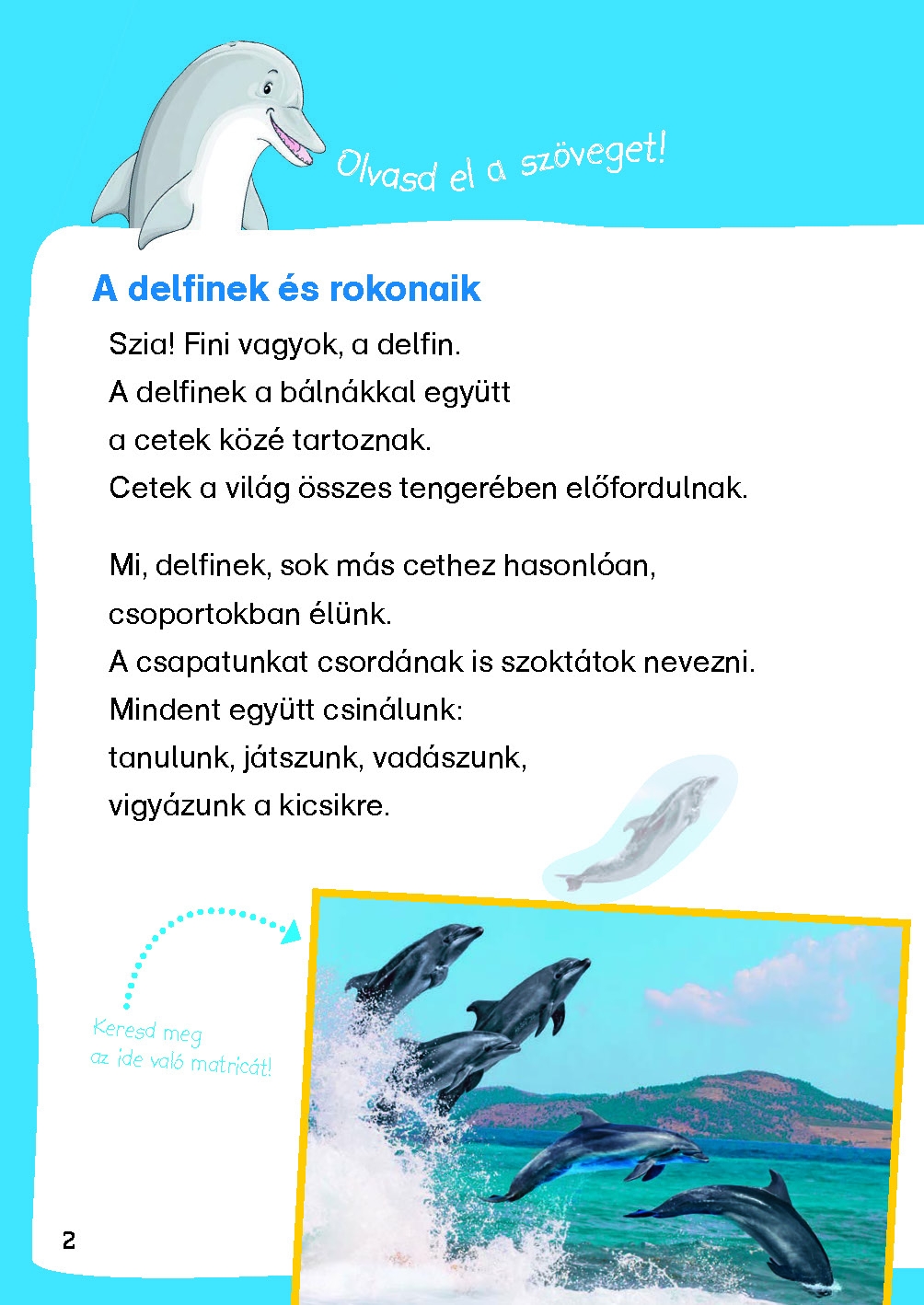 Fini, a delfin kedvenc témájáról, a bálnákról és delfinekről mesél. A feladványokkal ellenőrizheted, hogy olvasás közben mindent jól értettél-e. Fejtsd meg a csalafinta rejtvényeket, és keresd meg a matricák helyét!