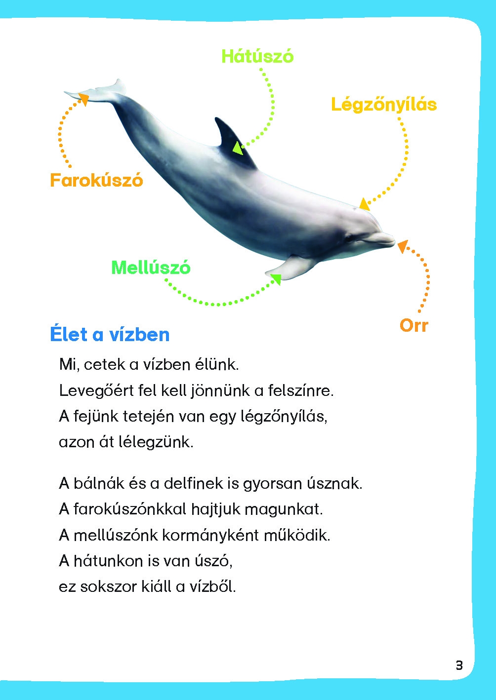 A Mi MICSODA Olvasó Bálnák és delfinek kötetét kiegészítő vagy önállóan is használható foglalkoztató. Fini, a delfin vezeti az olvasókat. Az oldalpárba rendezett, rövid ismeretterjesztő szövegeket változatos rejtvények és a szövegértést segítő feladatok követik.