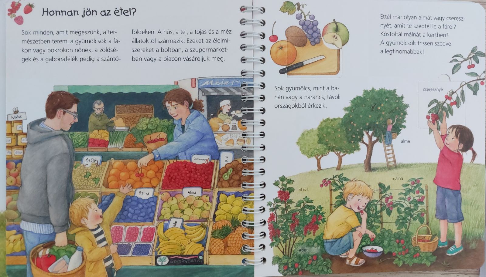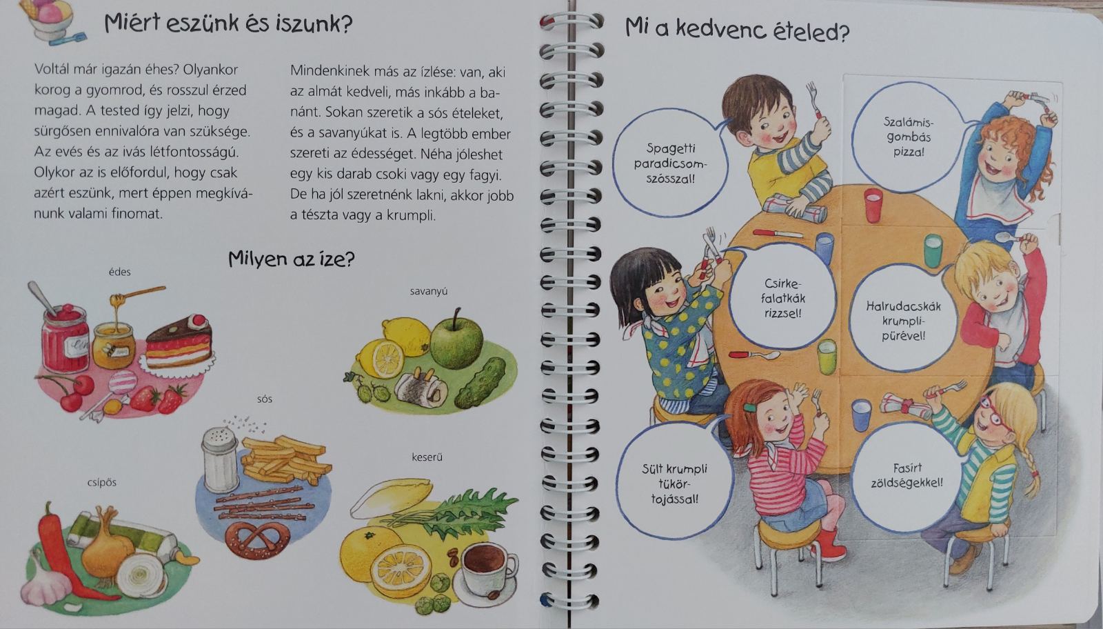 Az ízek különbözőek lehetnek. De akár édes, akár savanyú, egy dolog biztos: az evés nagyon jó dolog! A gyerekkönyvsorozat e kötetét lapozgatva kiderül: miért kell ennünk és innunk? Honnan származik az étel? Mi terem a kertben? Honnan jön a kenyér, és hogyan készül a sajt? Mit kapunk az egyes állatoktól? A gyerekek megtudhatják, hogyan segíthetnek a főzésben, és milyen hangulatos lehet egy piknik.
