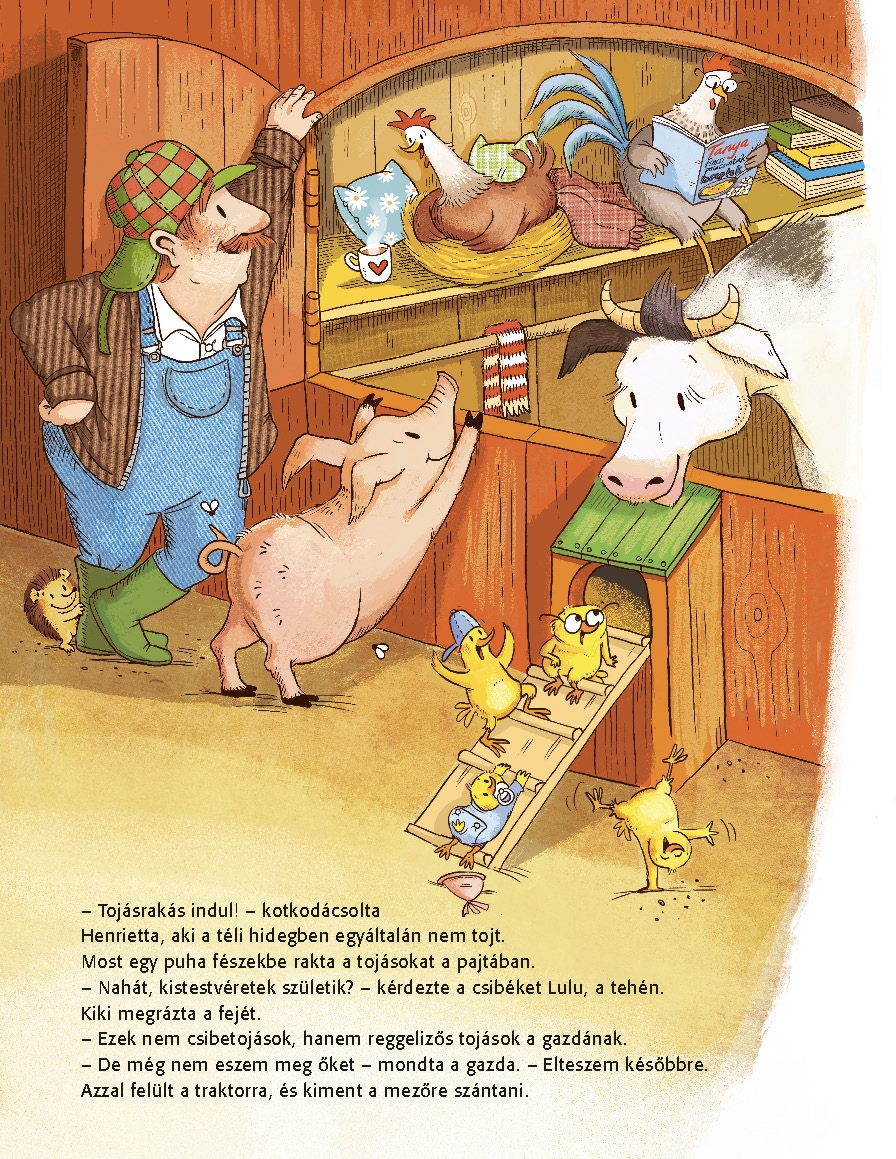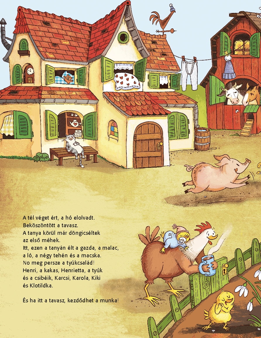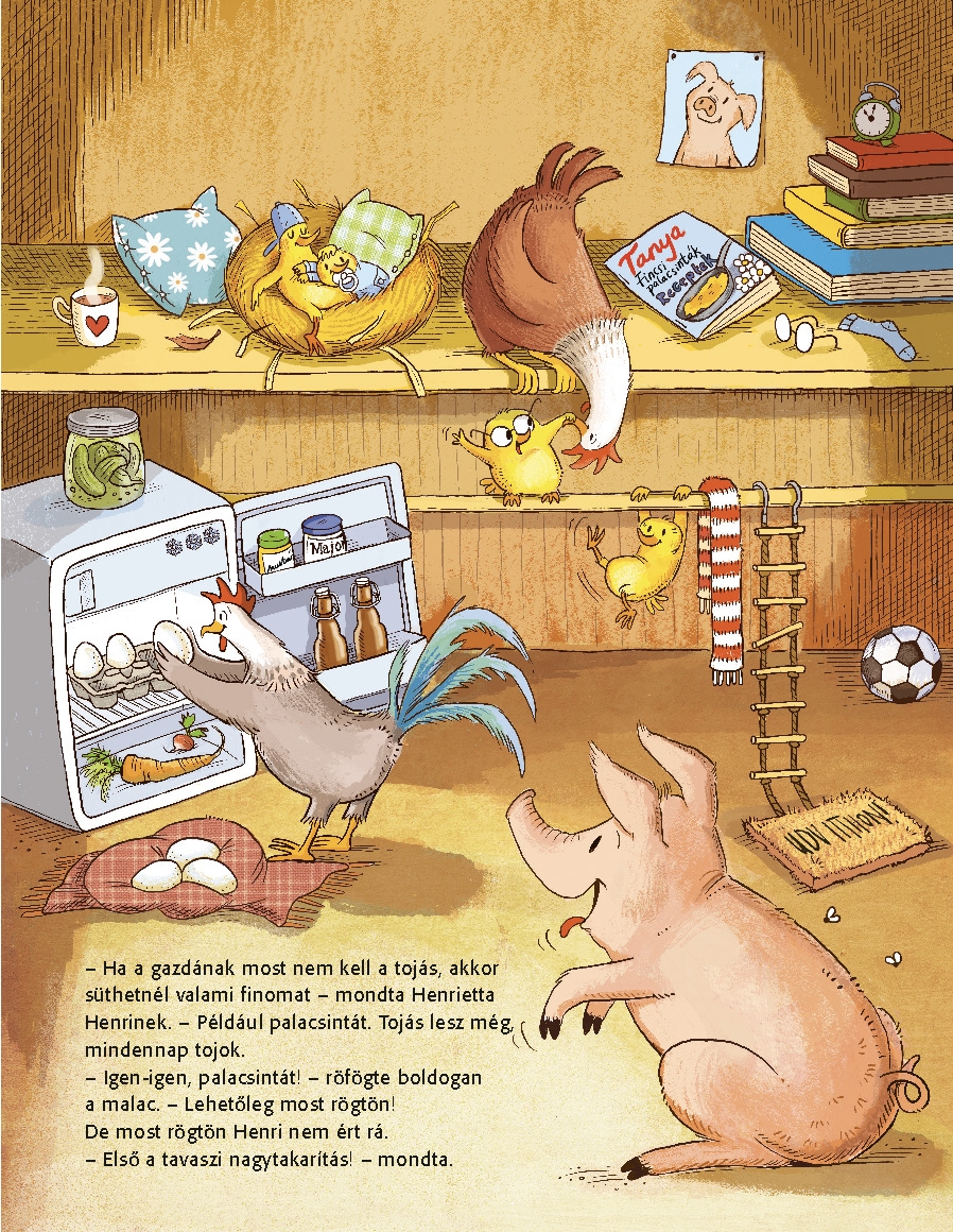 Végre itt a tavasz! A madarak lelkesen csicseregnek, virágzik a kert, Henrietta egymás után tojja a tojásokat. De jaj! A tojások eltűnnek! Nyom nélkül! Henri máris nyomozni kezd, segítőtársa pedig a malac, aki nagyon aggódik, hogy tojások nélkül nem lesz palacsintasütés. Együtt felfedeznek néhány nyomot, amelyek keresztül-kasul vezetnek a tanyán, és elviszik őket a tóhoz, sőt még az erdőbe is…